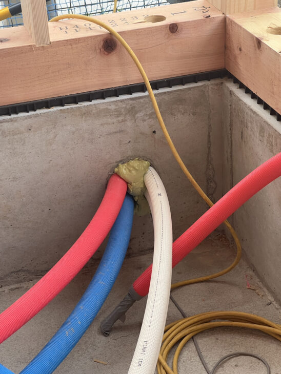 見えにくいところですが、配管の隙間には専用の発泡をしっかり吹き付けて、