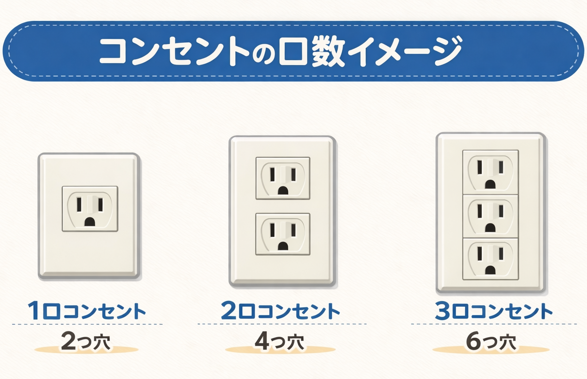 一般的なコンセントは2口で1セットになっていることがほとんどです